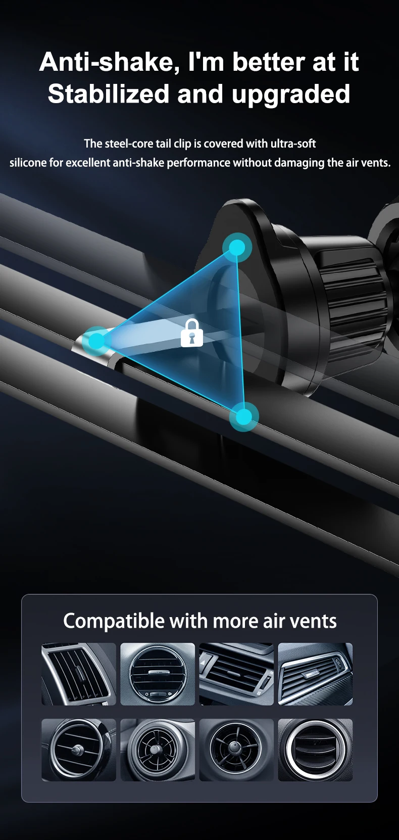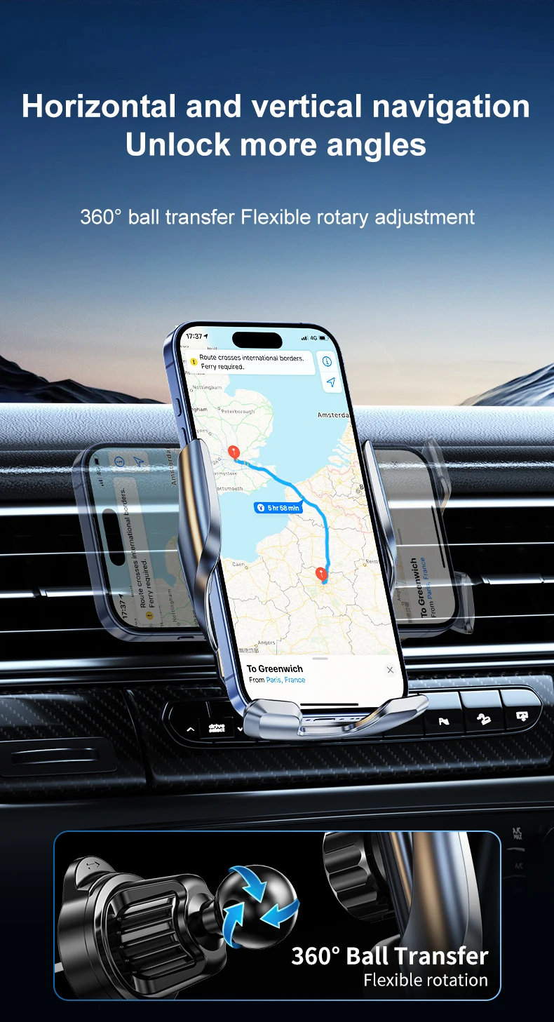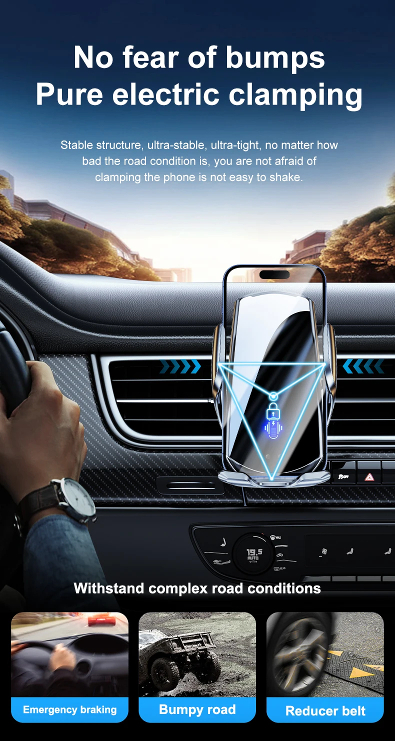 15W Auto-Sensing Wireless Charger – Fast Charging, LED Indicator, Universal Phone Compatibility, Secure Car Mount