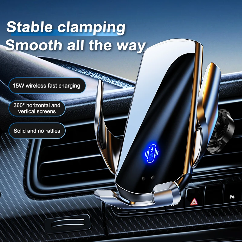 15W Auto-Sensing Wireless Charger - Fast Charging, LED Indicator, Universal Phone Compatibility, Secure Car Mount