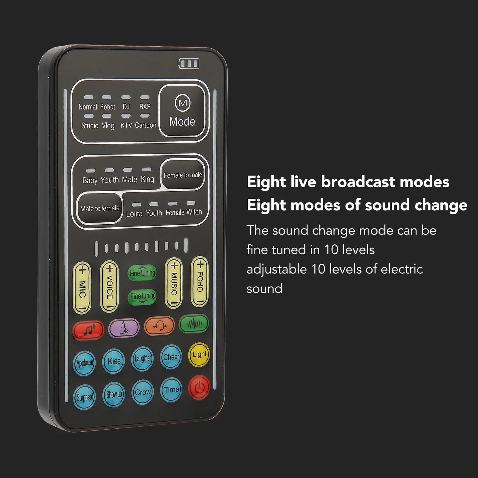 2. 8 Built In Sound Effects: Comes with 8 entertaining sound effects, just press the button for each sound to get interesting sound effects, that is applause, kiss, laughter, delight, surprise, fright, crow and time. The LED lights of the phone sound changer, which has a separate button to control.