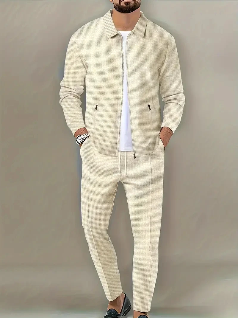 2 Pieces Classic Men's Sportswear Set - Soft, Breathable, Full Zip Tracksuit