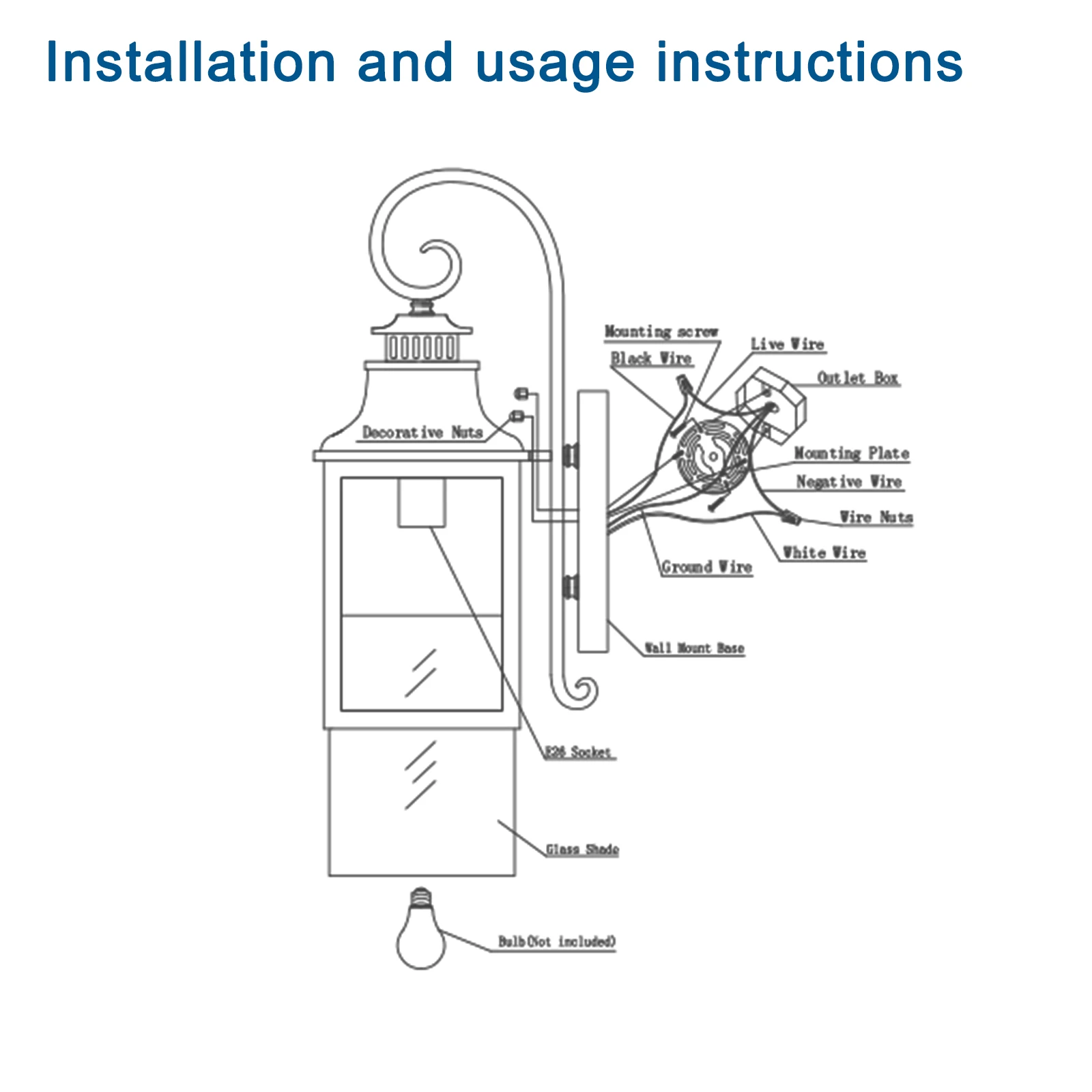 Featuring a retro design, this outdoor wall lamp features a black aluminum casing paired with clear ubble glass that is not only waterproof, rust-resistant, but also weather-resistant. Its classic lantern shape is suitable for use on front porches, yards, garages and gardens, providing bright and warm lighting effects to enhance the safety and beauty of outdoor Spaces. Lamps are easy to install, compatible with various LED bulbs (but bulb not included), environmental protection and energy saving. An ideal outdoor lighting solution for both residential and commercial environments.