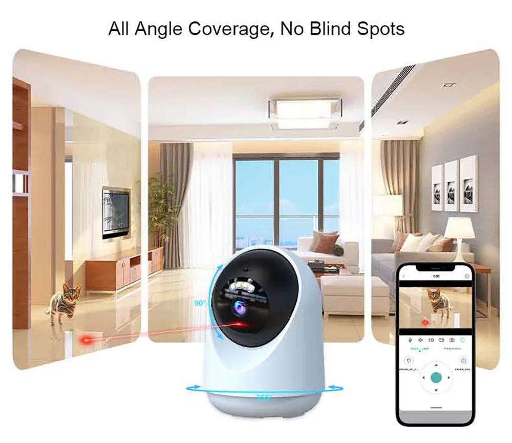 2K Smart Laser Pet Camera Indoor Smart Teasin Automatic Cat Laser Toy Interactive Adjustable Mode Electric Cat Toy For Kitty Dog