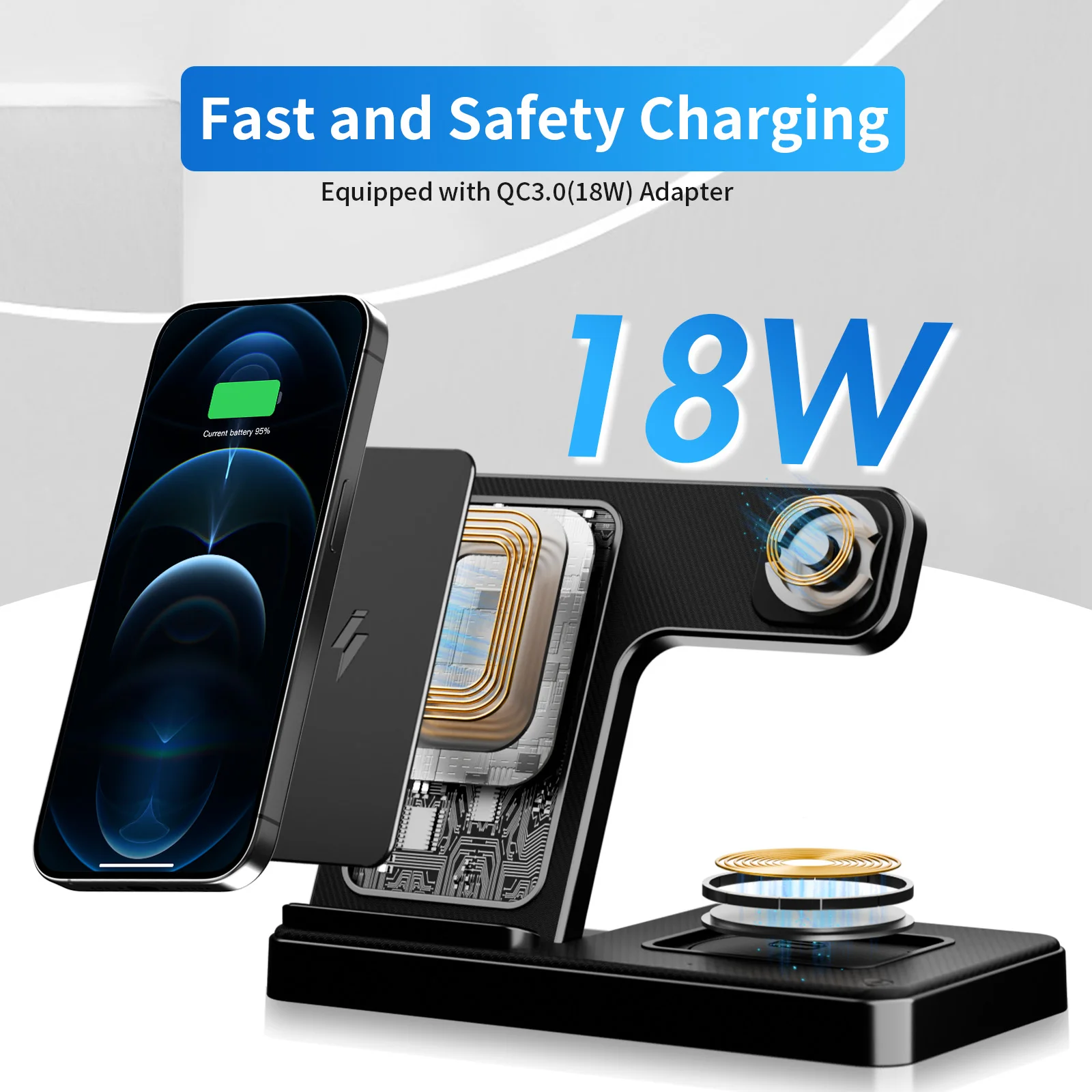 3 In 1 Wireless Charging Station Magnetic Fast Charging 18W Foldable For IPhone 16 15 14 13 12 Pro/Pro Max/Plus/Watch & Airpods