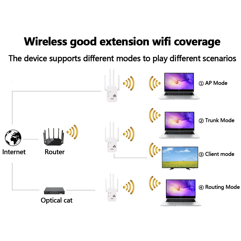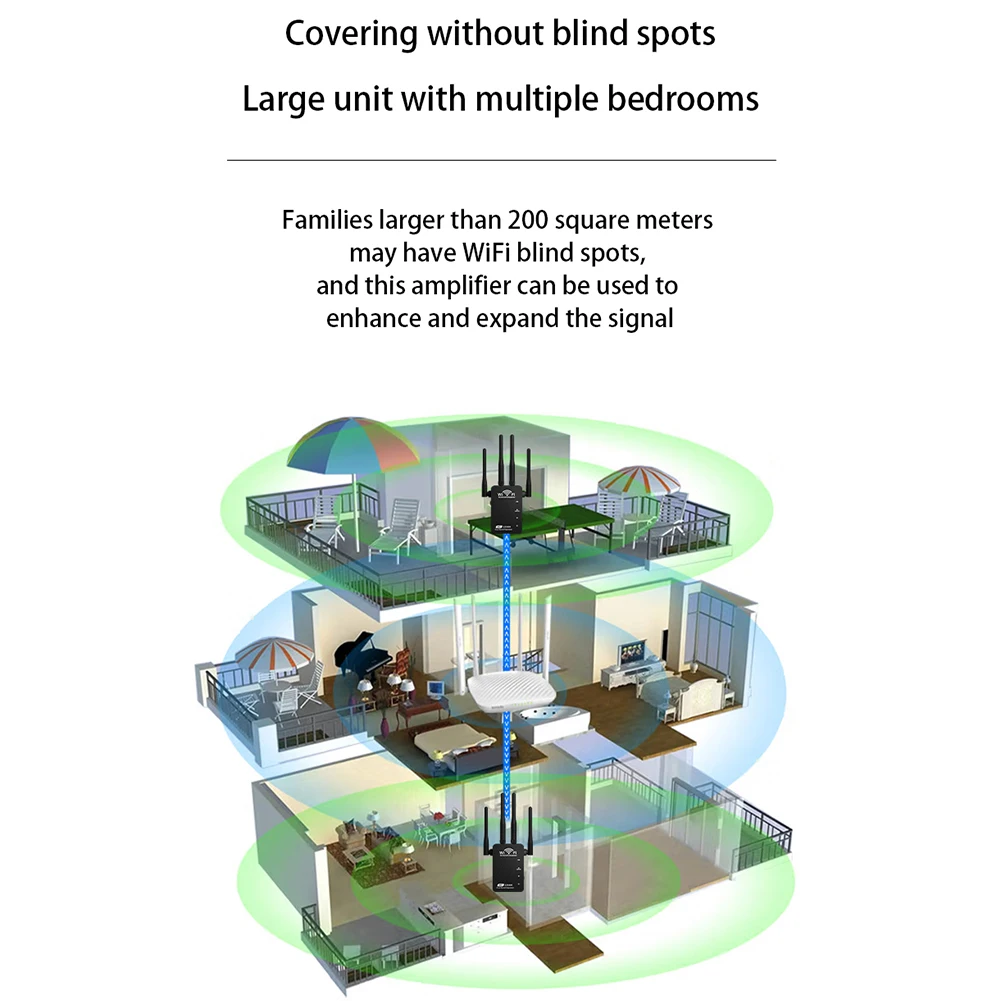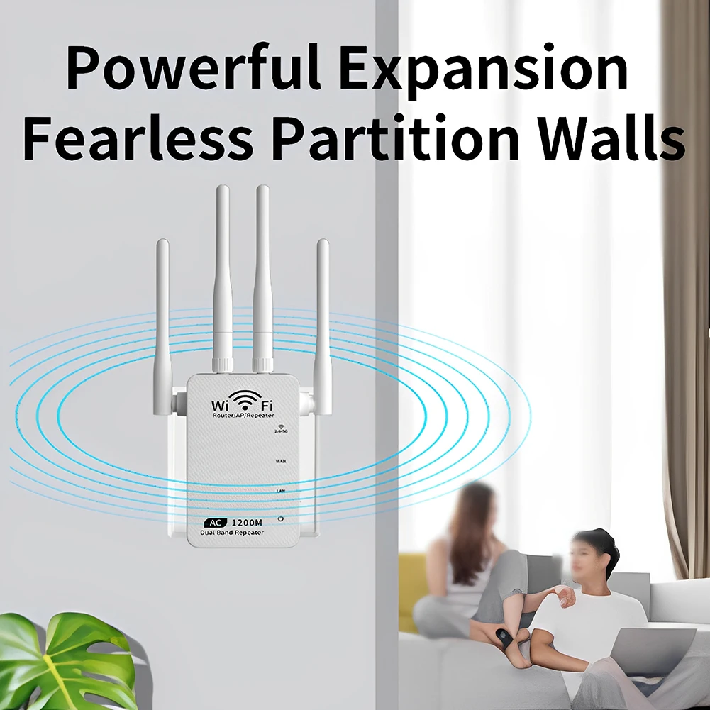 4 Antenna Signal Extender 5G High-Speed Expansion WiFi Booster Signal Amplifier Dual Band 1200M Wireless Network Signal Booster