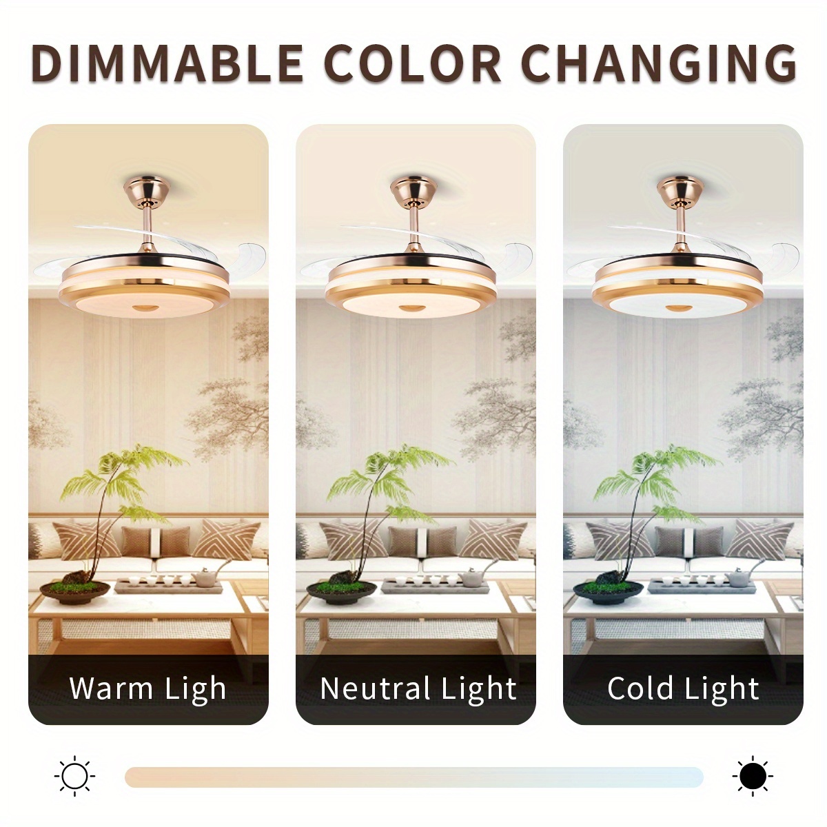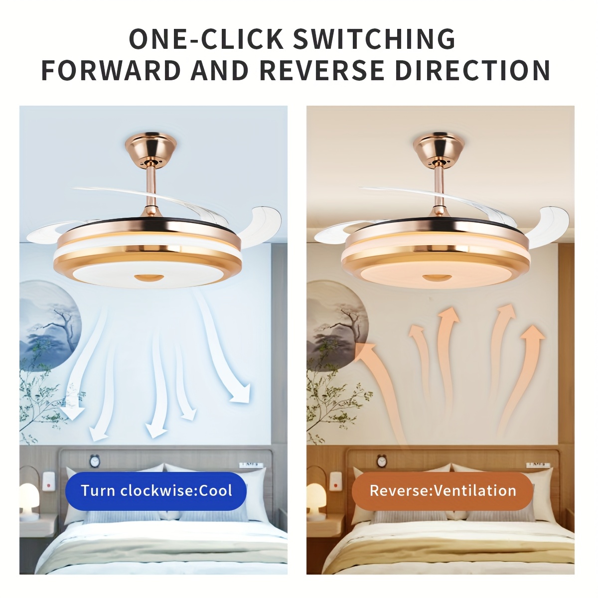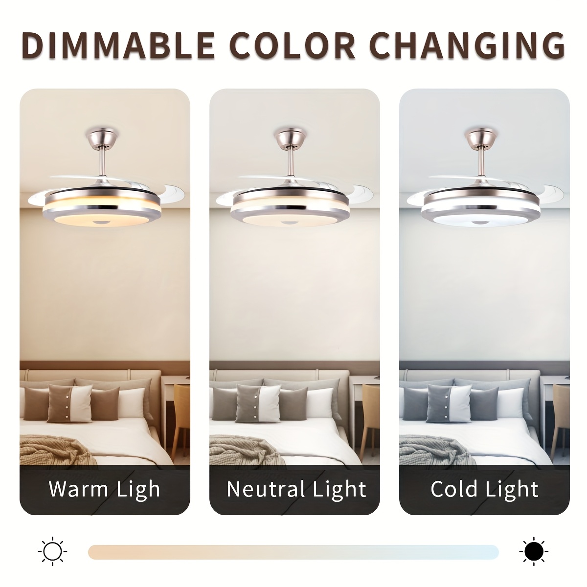 Multifunctional design: This lamp is combined with a fan and a lighting device. It has remote control, dimming, color temperature adjustment, brightness adjustment, 6-speed wind speed adjustment, sleep mode, reversible fan, and timing function. Size: 42 x 42 x 15.7 inches (length x width x height)