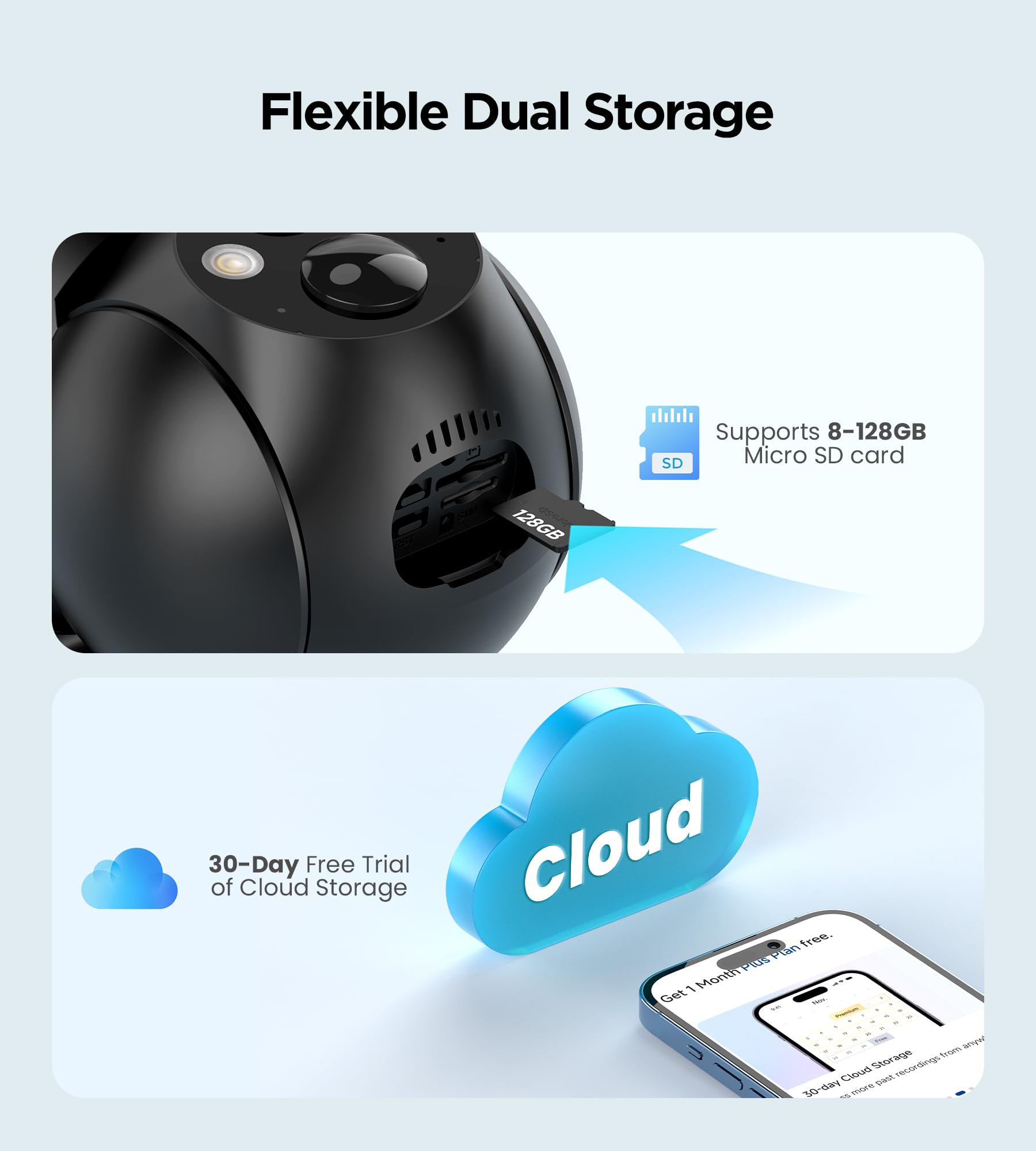 • [Built-in SIM & 32GB Memory Card]Includes a built-in EIOTCLUB 4G LTE SIM card (U.S. only; supports AT&T, T-Mobile, Verizon) with a 7-day unlimited data trial.Only the built-in SIM is supported.Comes with a 32GB memory card (supports up to 128GB) and a 30-day cloud storage trial.