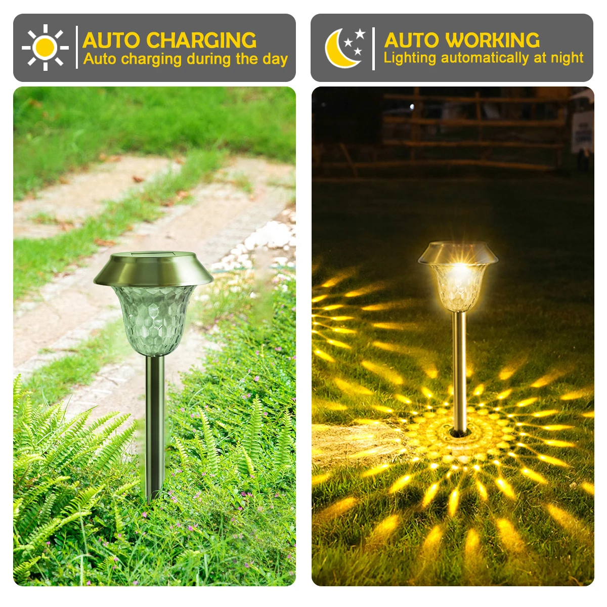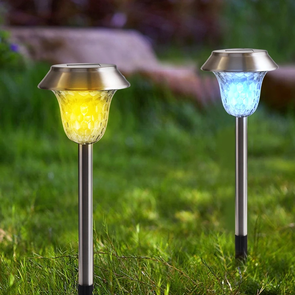 6pack Solar Powered Stainless Steel Warm White/RGB Color-changing Garden Lawn Lights, Outdoor Waterproof LED Yard Stakes Landsca