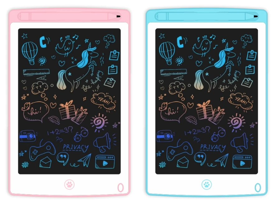 1. Color Drawing Boards: LCD writing tablet adopts the latest liquid crystal pressure sensitive technology, which produces lines of different thicknesses according to the strength of your push. When boys and girls write, draw, different colors will appear on the drawing tablets.