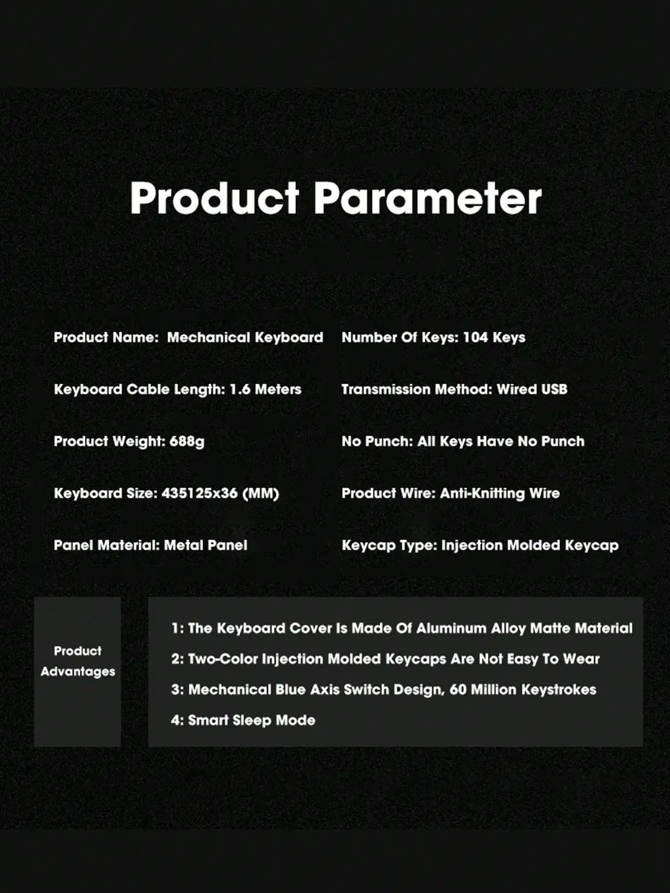 • 104 keys are rolloverless, and FN+SCLK mode is switched to rollover mode