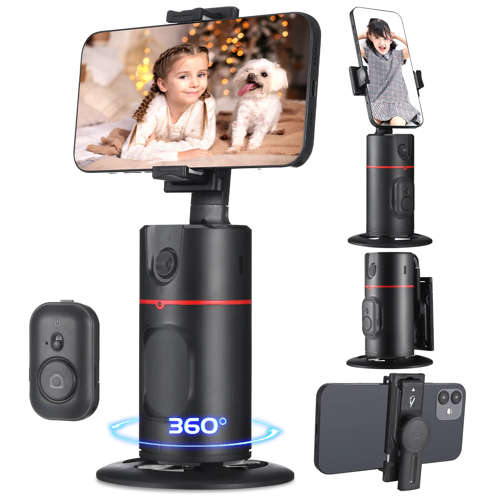 【Standard 1/4 Inch Tripod Connector】Shooting gimbal base can be easily detached and replaced with a standard 1/4 screw interface, making it compatible with other tripods. This means you can use this smart face tracking mount with other tripods for height adjustments or different shooting angles, providing more flexibility and convenience for your video recording needs.