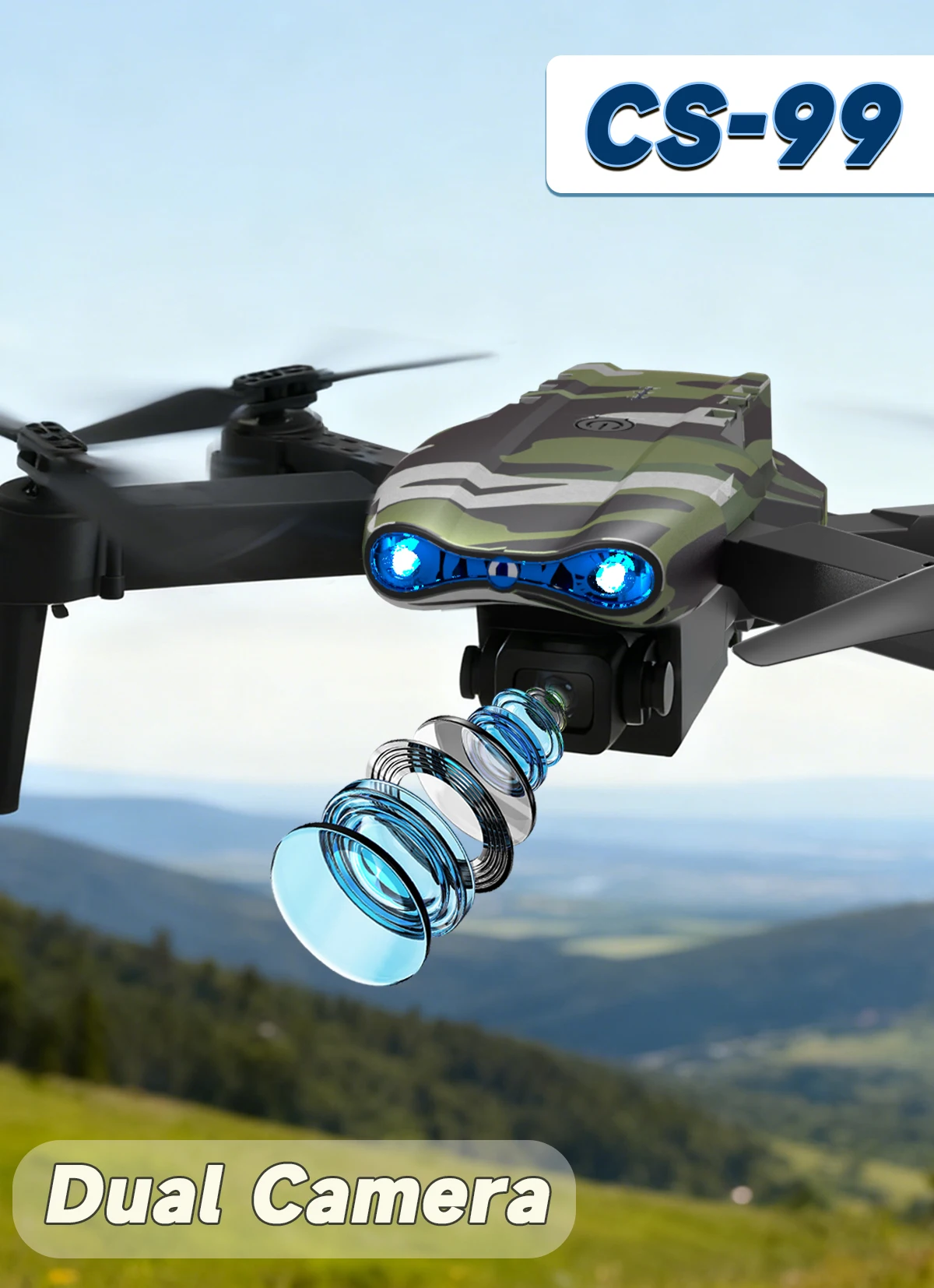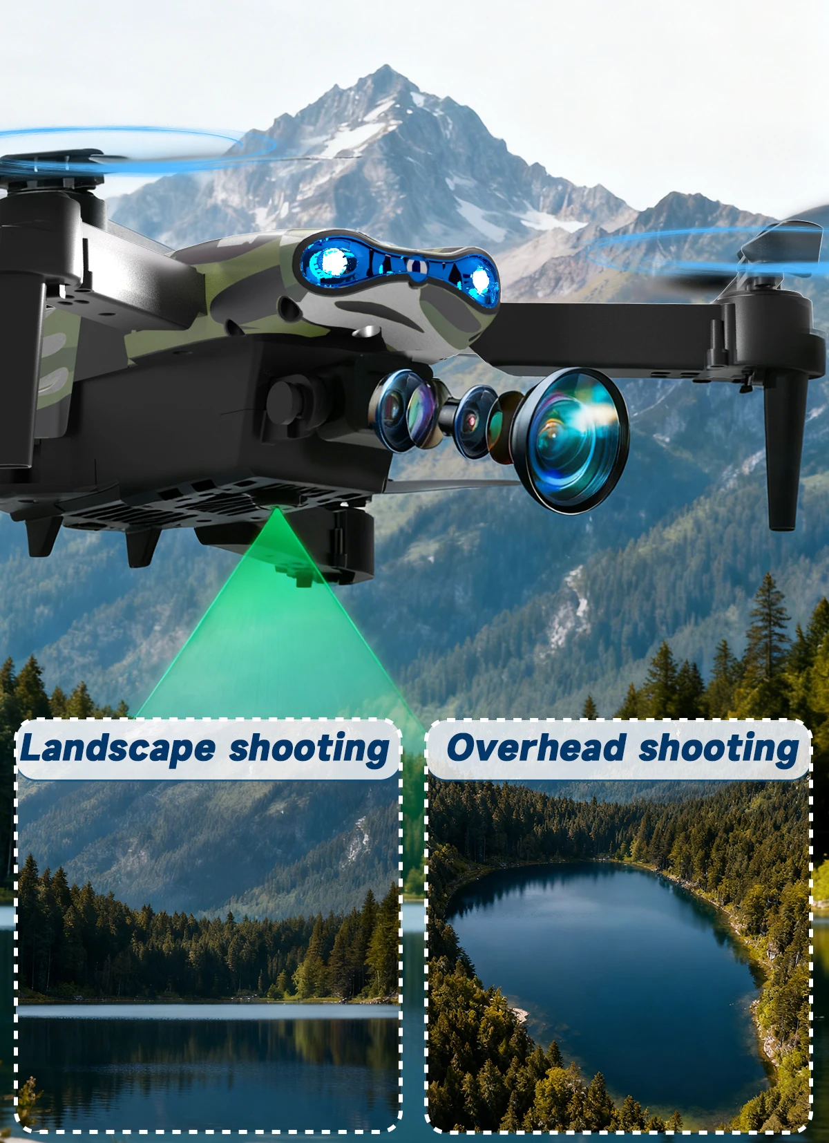 Camouflage foldable drone with HD camera, beginner-friendly, featuring positioning and tracking. The perfect birthday gift.
