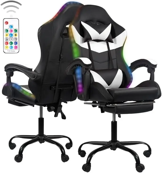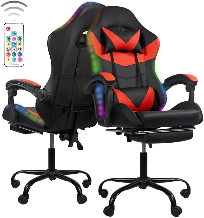 Gaming Chair with LED Light Control, Adjustable Backrest and Seat Height Swivel Recliner, Racing Style Ergonomic Office Computer