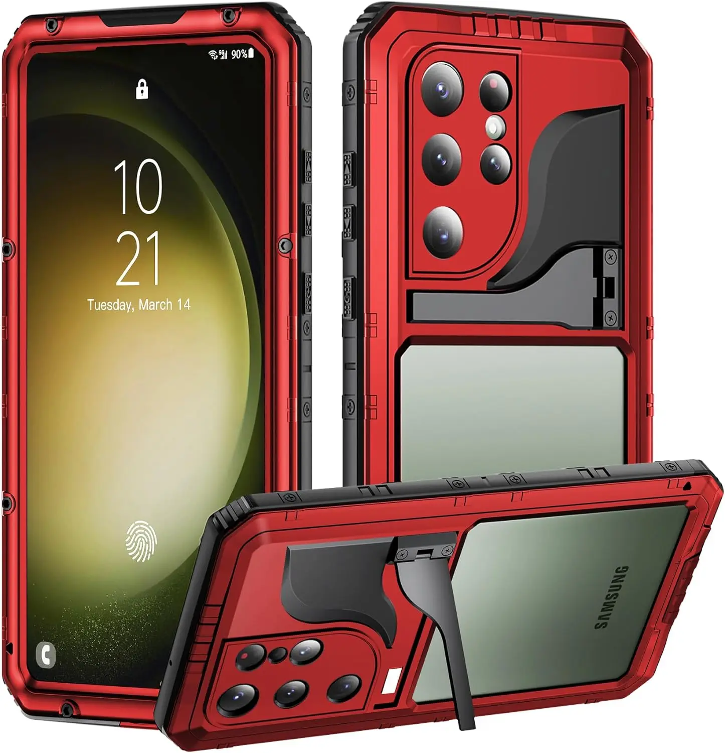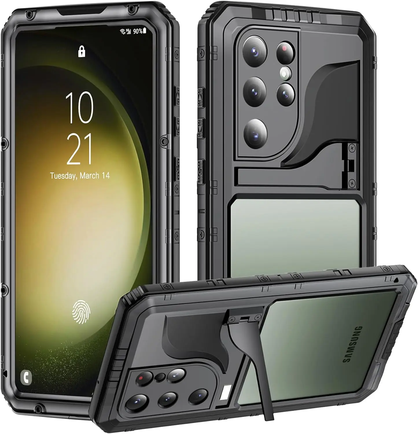 IP68 Heavy Duty Aluminum Metal Waterproof Case For Samsung S23 Ultra S22 Plus Shockproof Cover Screen Lens Protector Kickstand