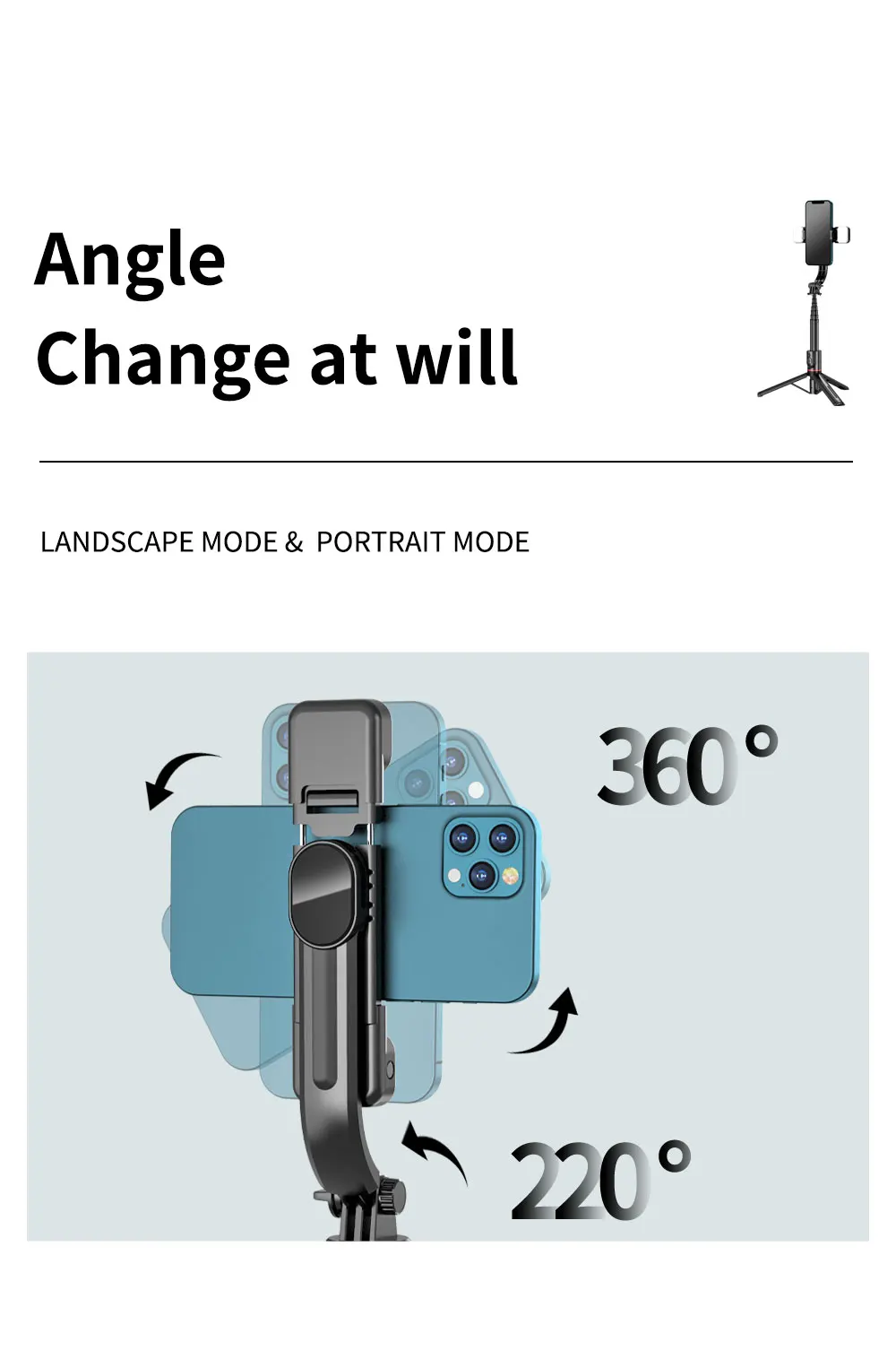 6. 360 degree rotation supports horizontal and vertical shooting;