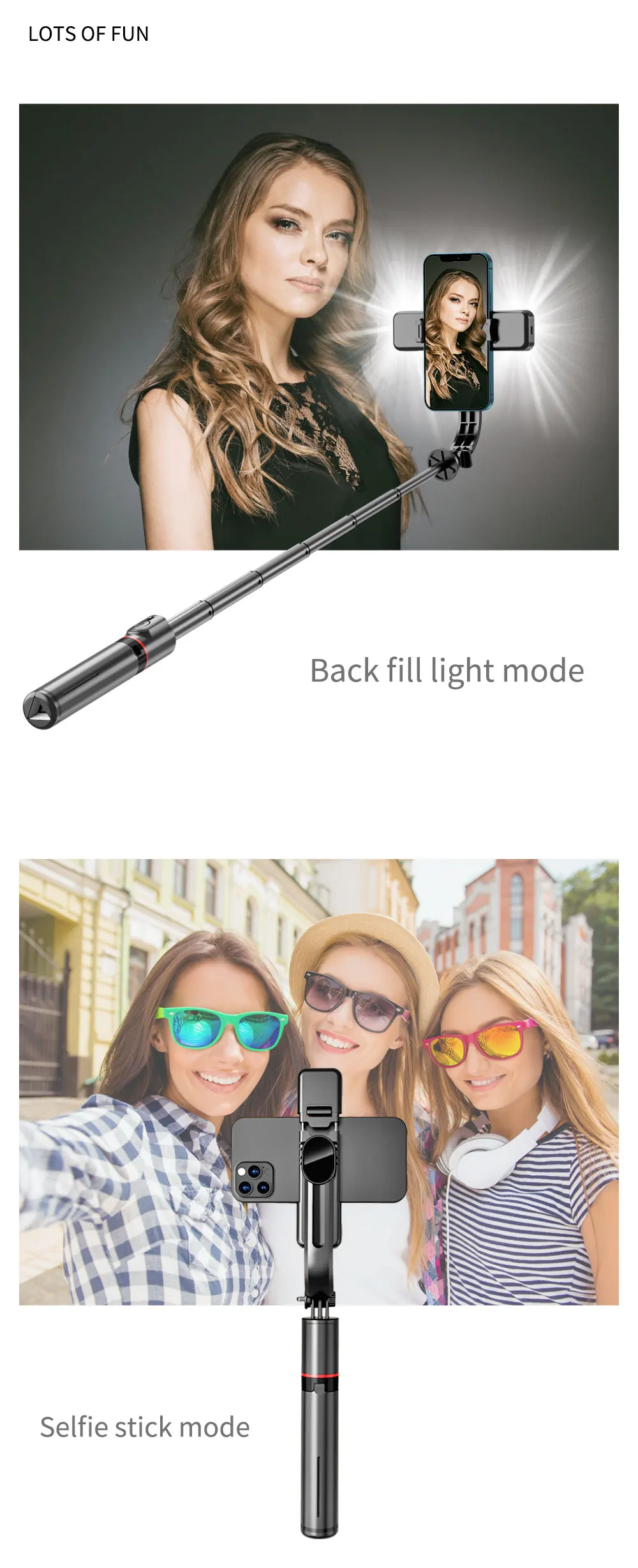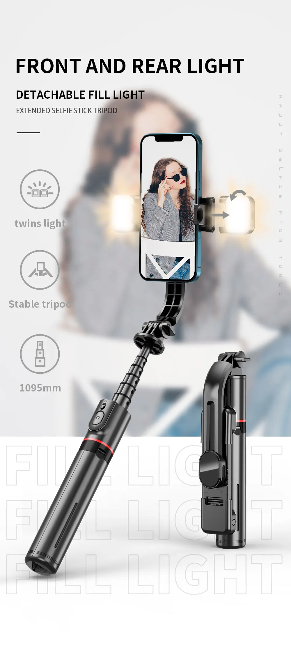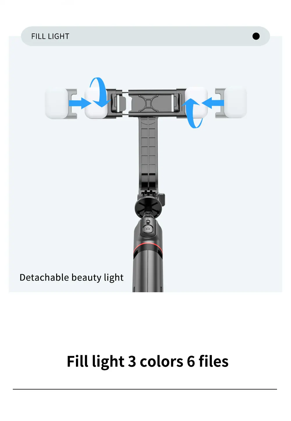 1. Comes with double fill light + six gears (three-color temperature);