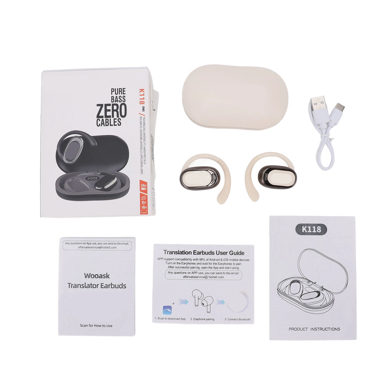 Language Translator Earbuds Bluetooth 5.4 Wireless Earbuds Clear Sound Real Time Phone Call with Charging Case for Business