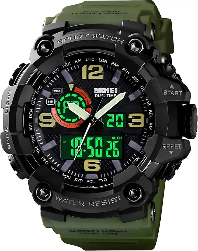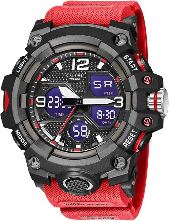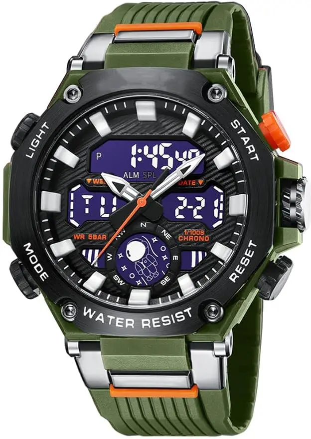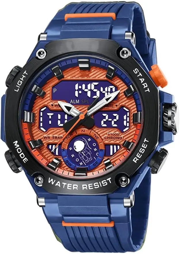 Digital Watches】:Multifunctional watch design, plus dual Movement, date, stopwatch, alarm clock, luminous mode, 12/24-hour clock, mens digital watch waterproof, meet the requirements of men's on watches.