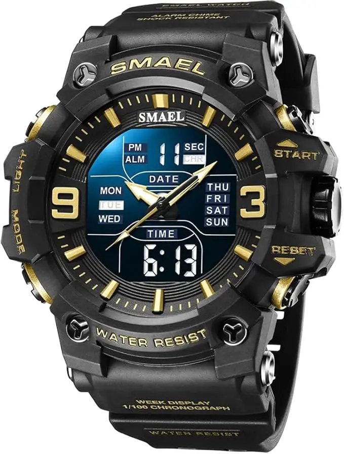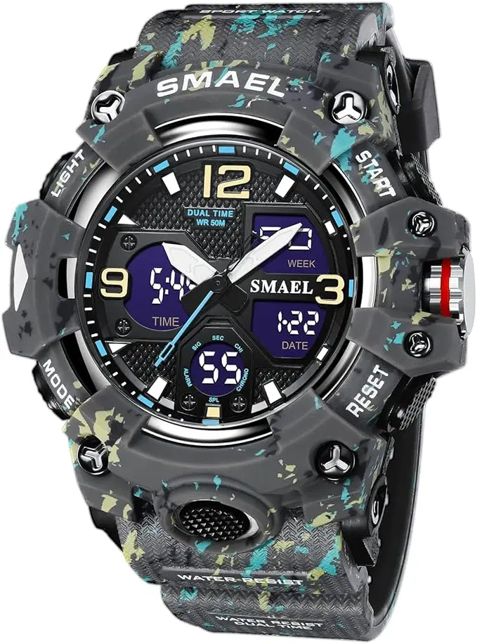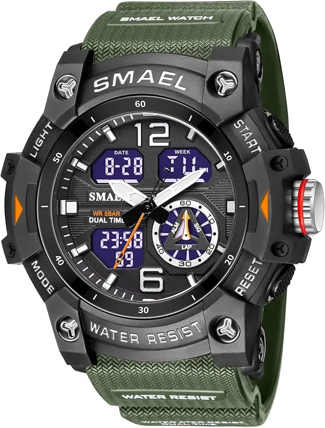 Men's Large Face Outdoor Sports Watches Military S-Shock Watch Waterproof, Backlight, Alarm, Stopwatch Features – Rugged Wristwatch for Training, Hiking, and Adventure