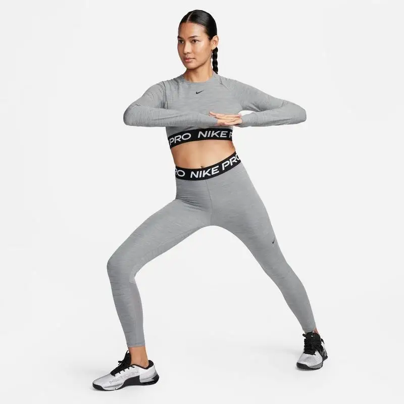 Size & FitTight, body-hugging fitCropped lengthProduct FeaturesForm-fitting, flexible active lifestyle crop top with Nike Swoosh logo at center chest and Nike Pro tape logo bottom bandElasticized jacquard band at hem with thumbholes for extended coverage and comfortable, stay-put fitNike Dri-FIT technology for moisture management during high-intensity activity83% Polyester and 17% Spandex.Machine washThe Nike Pro 365 Dri-FIT Cropped Long-Sleeve T-Shirt is imported.This Women’s Nike Pro 365 Dri-FIT Cropped Long-Sleeve T-Shirt is a sleek, stretchy, and form-fitting shirt made with a flexible poly-spandex fabric that allows you to move freely and naturally. An elastic Nike Pro bottom band and thumbholes help hold this cropped training top in place, while Dri-FIT keeps sweat from slowing down your training session.