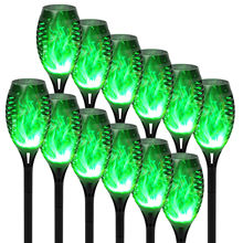 Green Solar Flame Light Outdoor with Flickering Flame Waterproof Lawn Ground Inserted Landscape for Garden Decorations Yard Pati