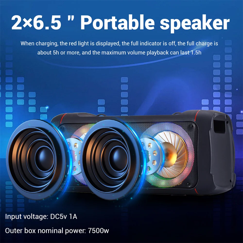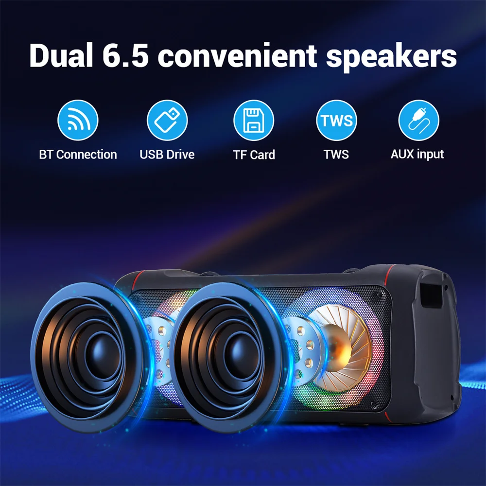 Powerful Bluetooth Speaker LED Light Portable Outdoor Speakers Dual 6.5'' Subwoofer Sound Box Support