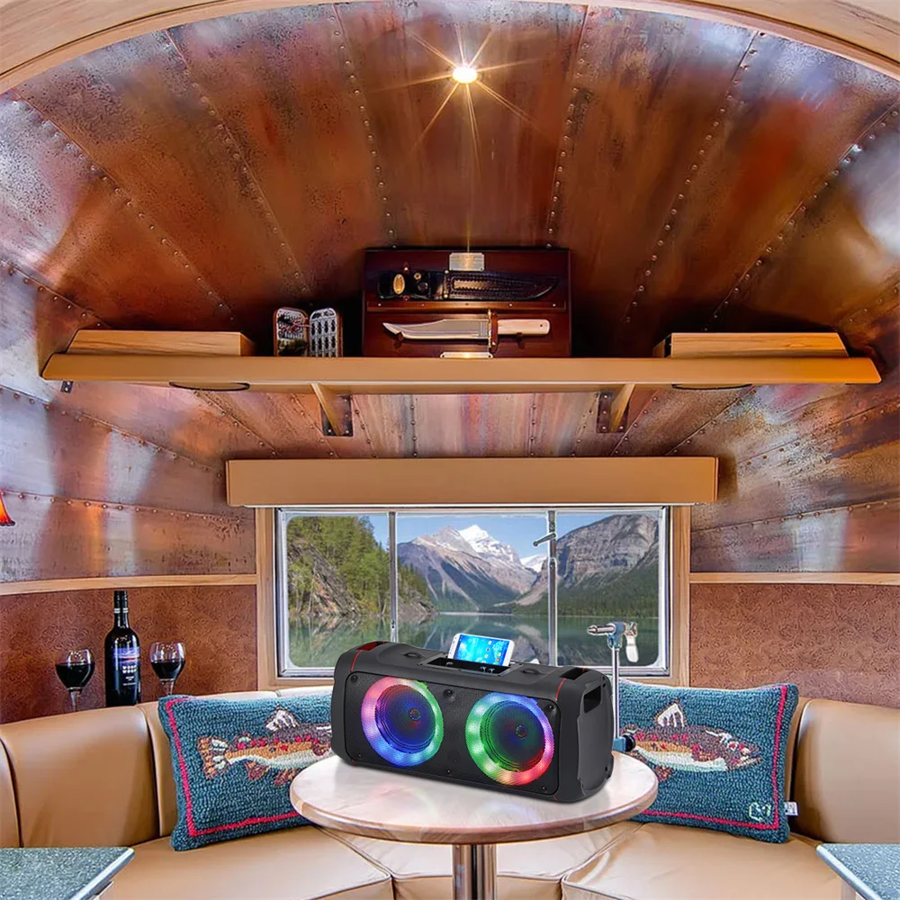 Powerful Bluetooth Speaker LED Light Portable Outdoor Speakers Dual 6.5” Subwoofer Sound Box Support