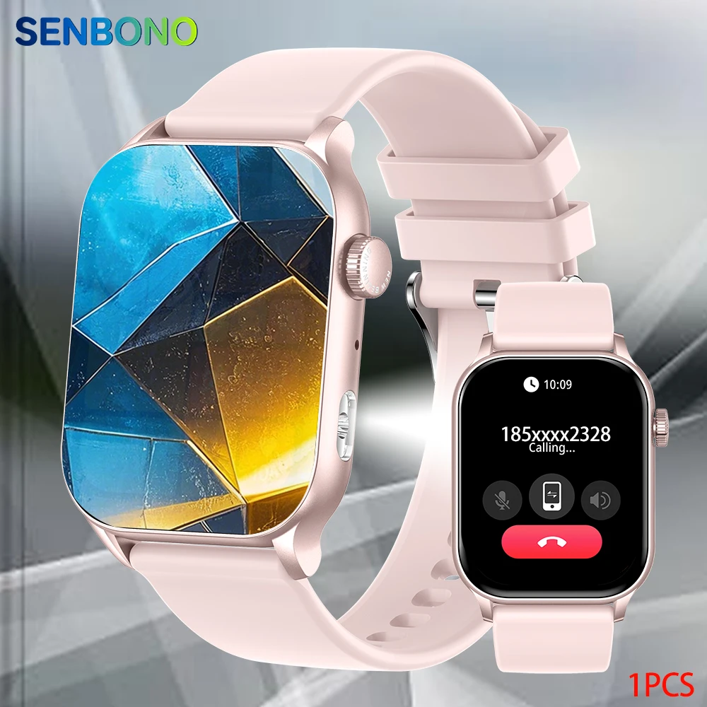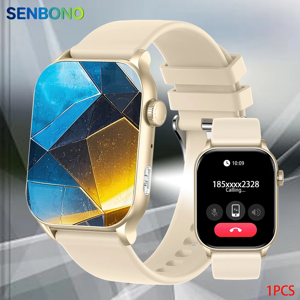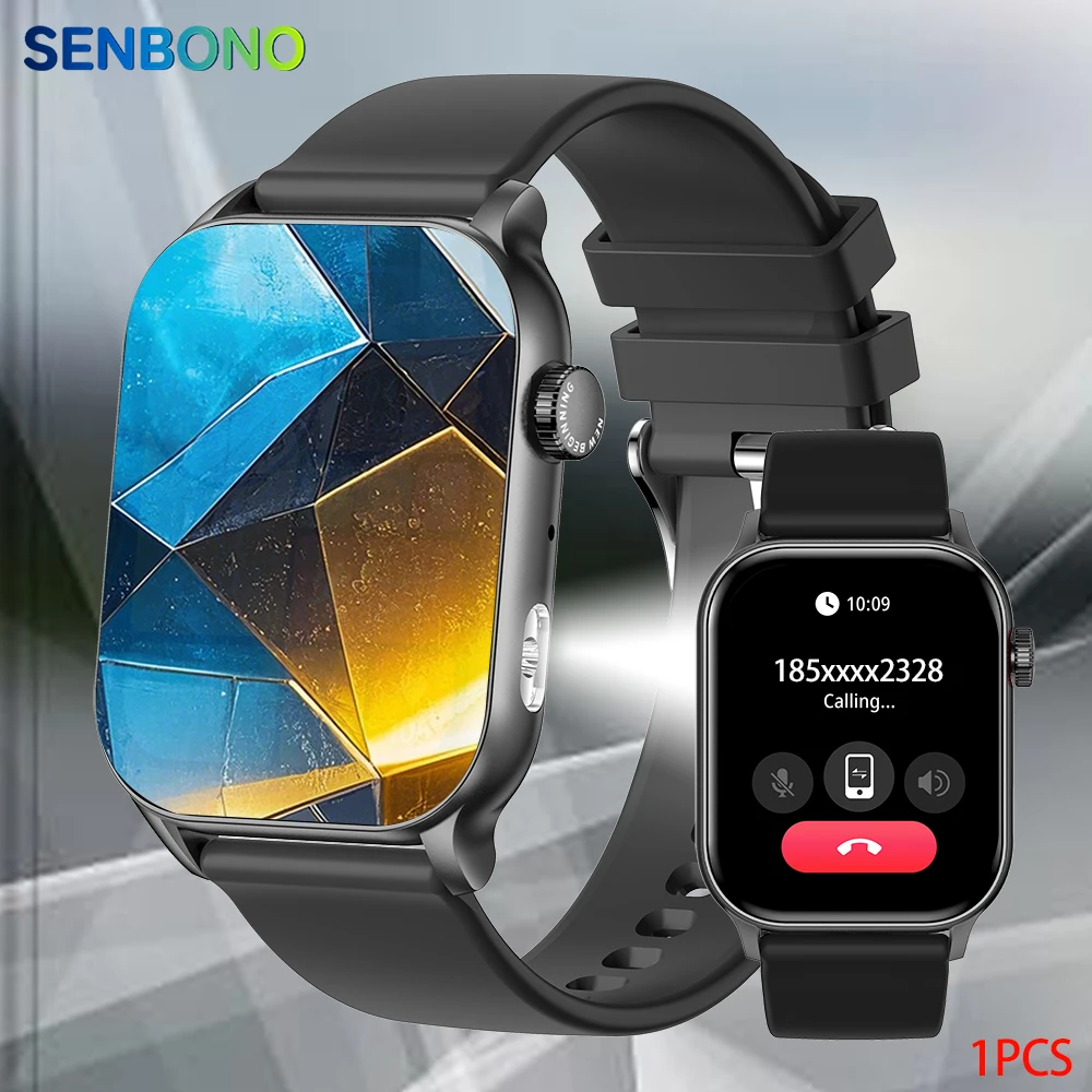 SENBONO AMOLED Smart Watch Bluetooth Call LED Flashlight 100+ Sport Modes Custom Dial AI Assistant Smartwatch for Men Women