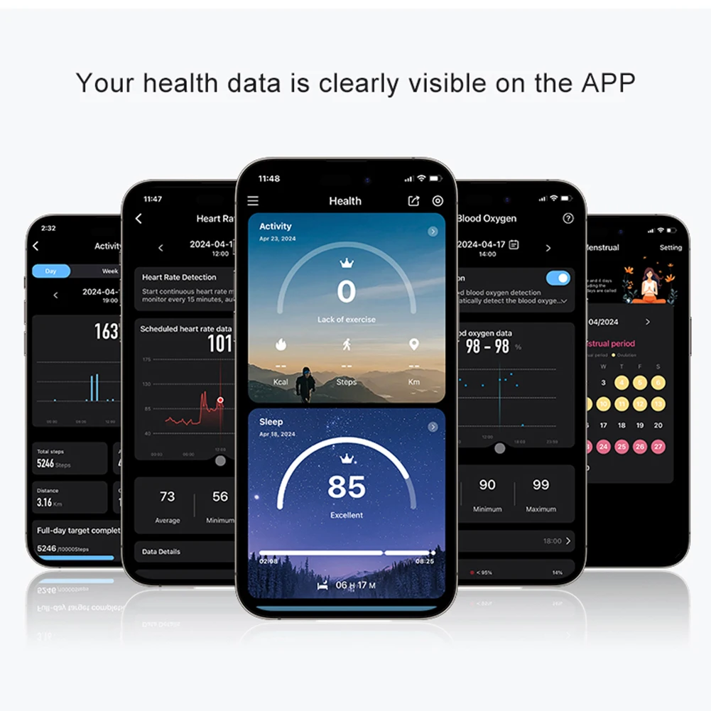 2.Comprehensive Health Monitoring: With its built-in Blood Oxygen Pressure Health Monitor, the device provides real-time insights into heart rate, blood oxygen, HRV, and skin temperature, ensuring optimal Health and Sleep Monitor capabilities.