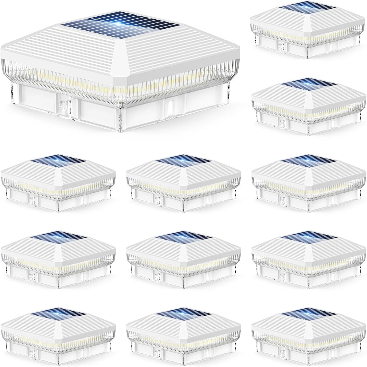 “Solar Post Cap Lights 6/12-Pack, 40-LED 30-Lumen 4×4 Fence Lights, 3 Modes for Wood/Vinyl Posts”