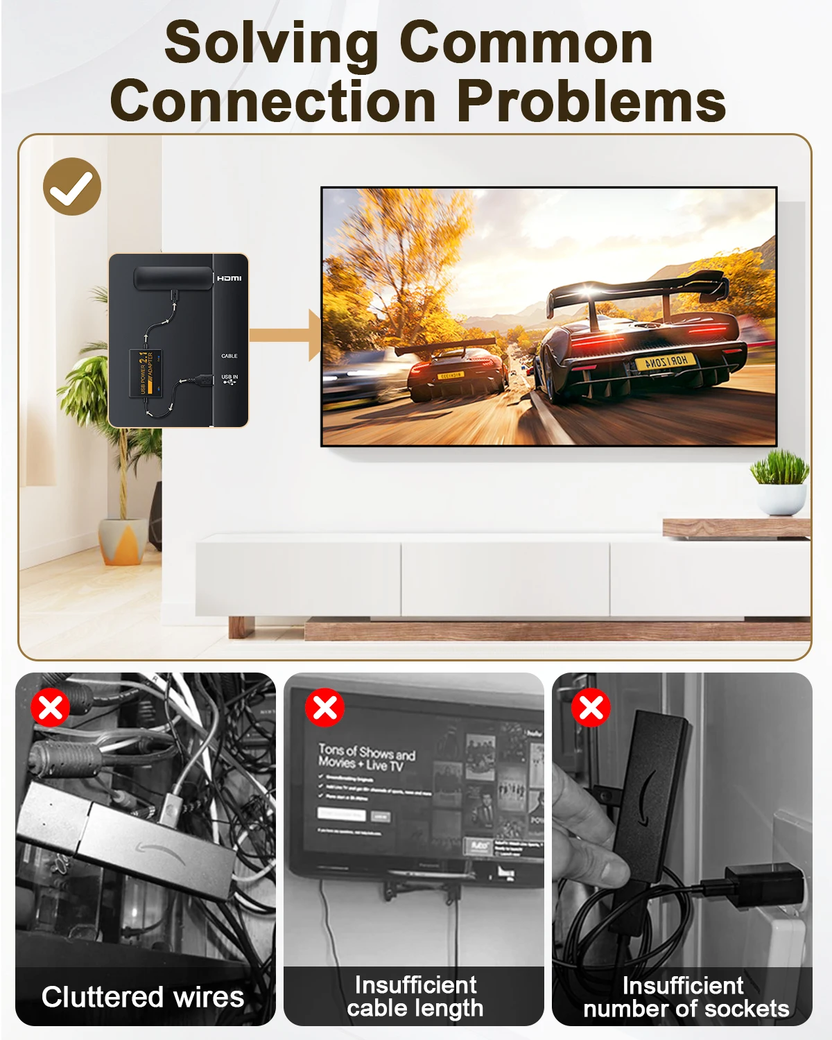● Super easy to Install:A plug and play design.Just plug the micro USB cable into your Smart TV fire stick and than plug the USB connector into your TV’S USB port.Solve the problems of “Insufficient power'' errors,gives enough power for straming sticks.