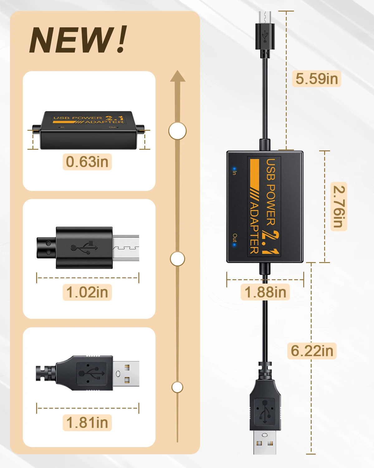USB Power Adapter For Fire TV Sticks Micro-USB Firestick Adapter 1800mAh Battery Stabilized Supply Plug and Play