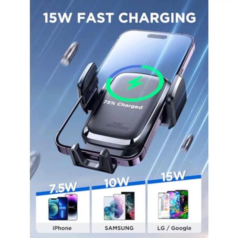 Wireless Car Charger 15W Qi Fast Charging Auto Clamping Phone Holder Mount for iPhone 16 15 14 13 Pro Max Xs Galaxy S24 Ultra L